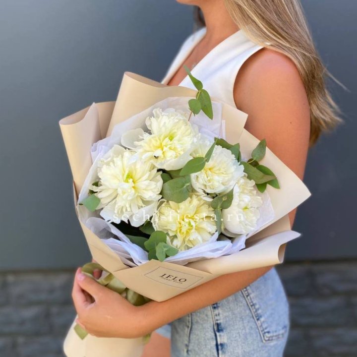 Букет белых пионов