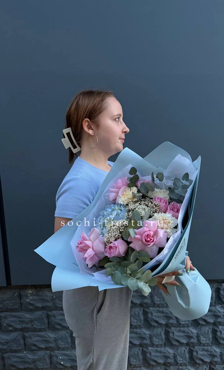 Букеты из эустом, альстромерий, диантусов, хризантем в Красной ПолянеСреднее время сборки: 35-45 минут