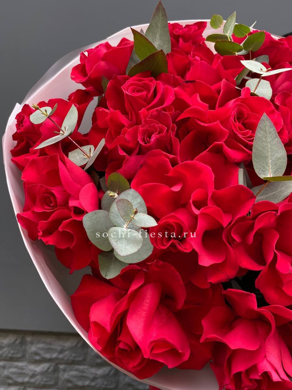 Состав: вывернутые розы - 11 шт., эустома - 3 шт., эвкалипт, лента, упаковка