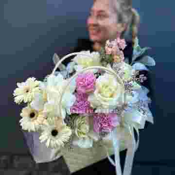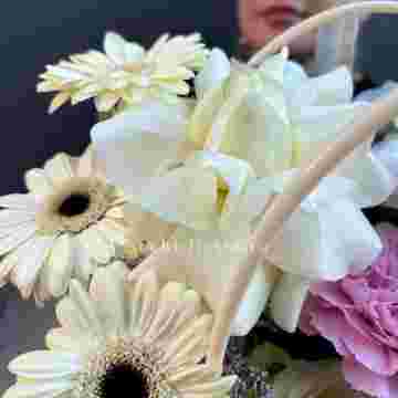 Состав: гербера, диантус, гортензия, бомбамстик, озатамус