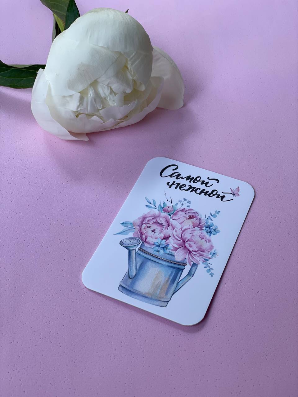 Можем внести Ваш текст в объёме, примерно, 2-4 предложения. Привязывается к букету