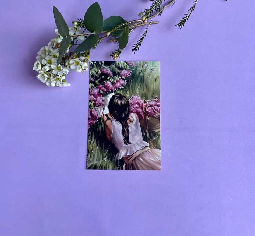 Открытка к букету "Среди пионов"