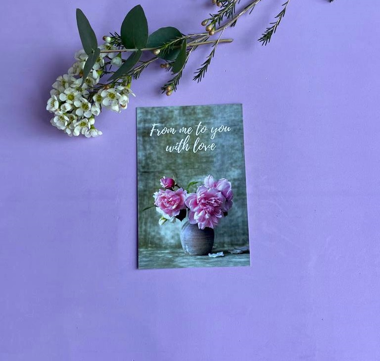 Можем внести Ваш текст в объёме, примерно, 5-7 предложений. Вкладывается в крафтовый конверт