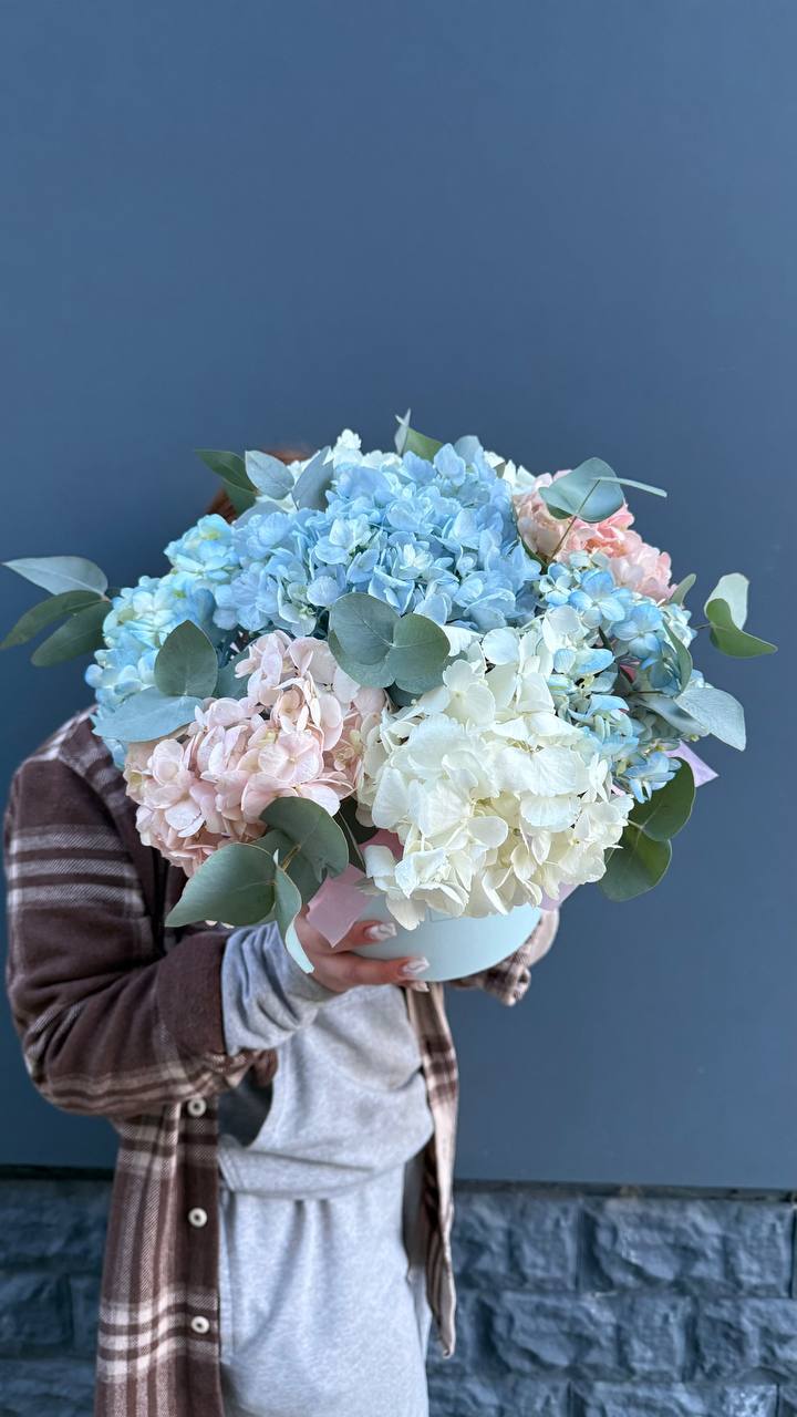Настоящий цветочный фейерверк в стильной коробке! Эта пышная и многосоставная композиция притягивает взгляды богатством форм и оттенков — от кремового и персикового до насыщенного розового и белого. Это не просто цветы, а целая история о радости, празднике и восхищении. Подарок, который гарантированно произведет яркое впечатление и останется в памяти надолго.
