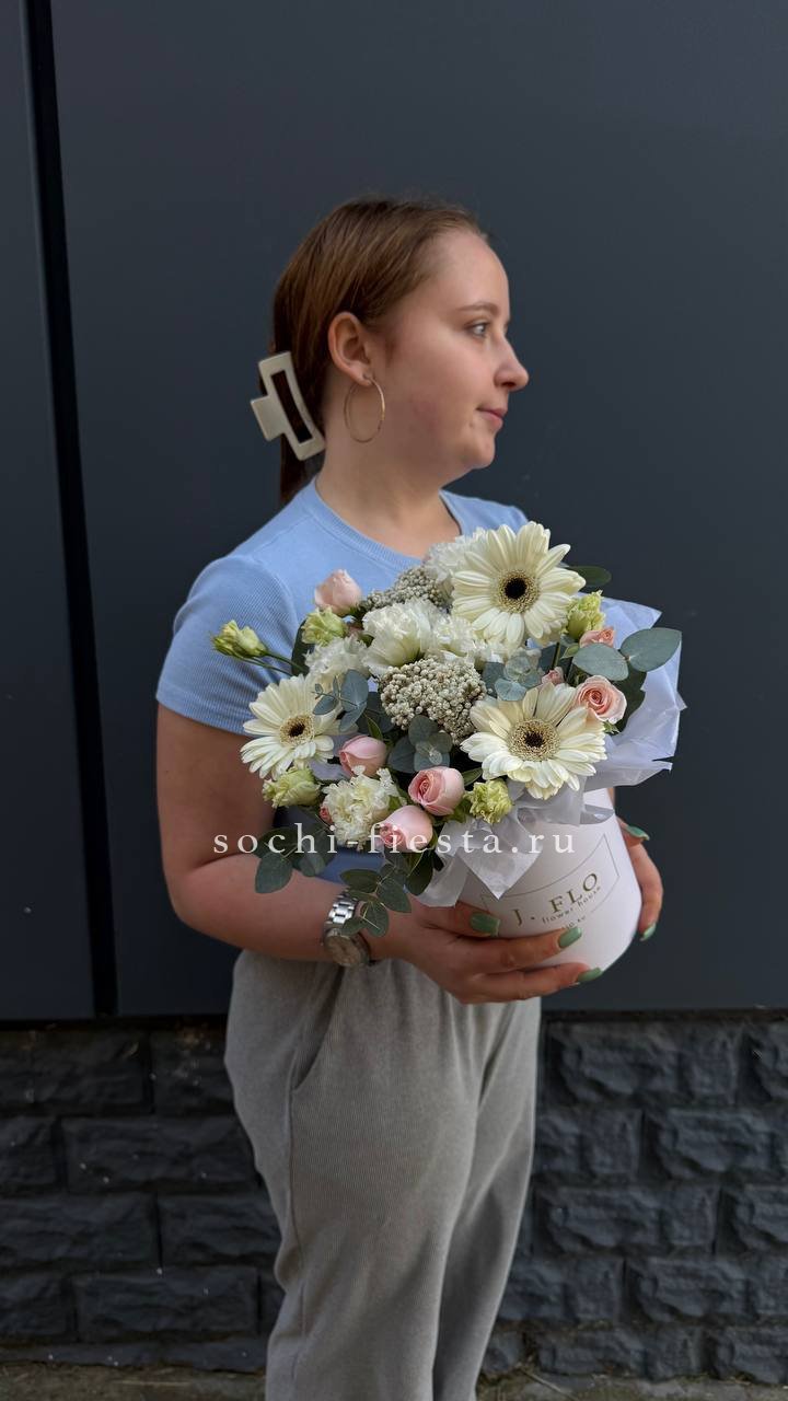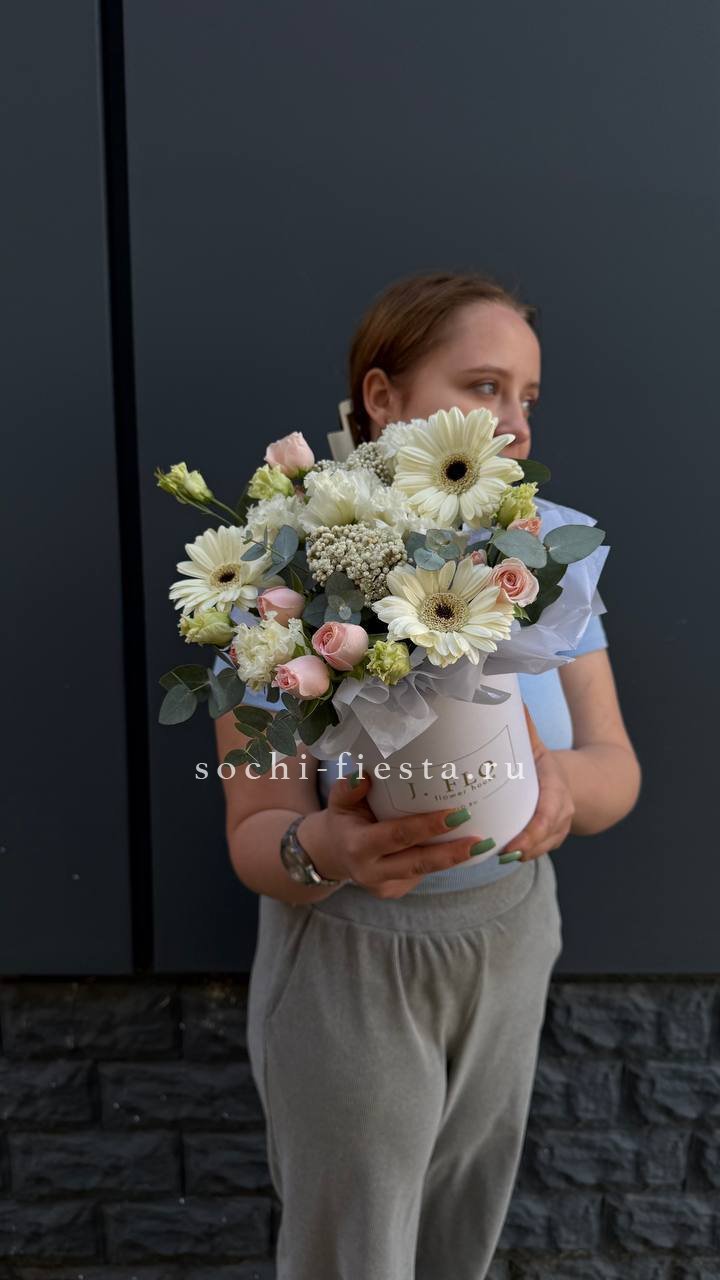 Состав: гербера, бомбастик, озотамус, эвкалипт, эустома, бокс 13