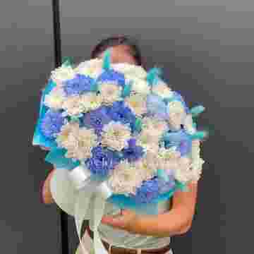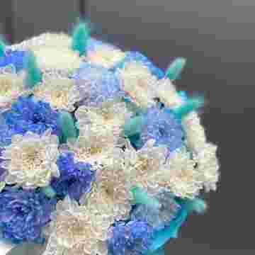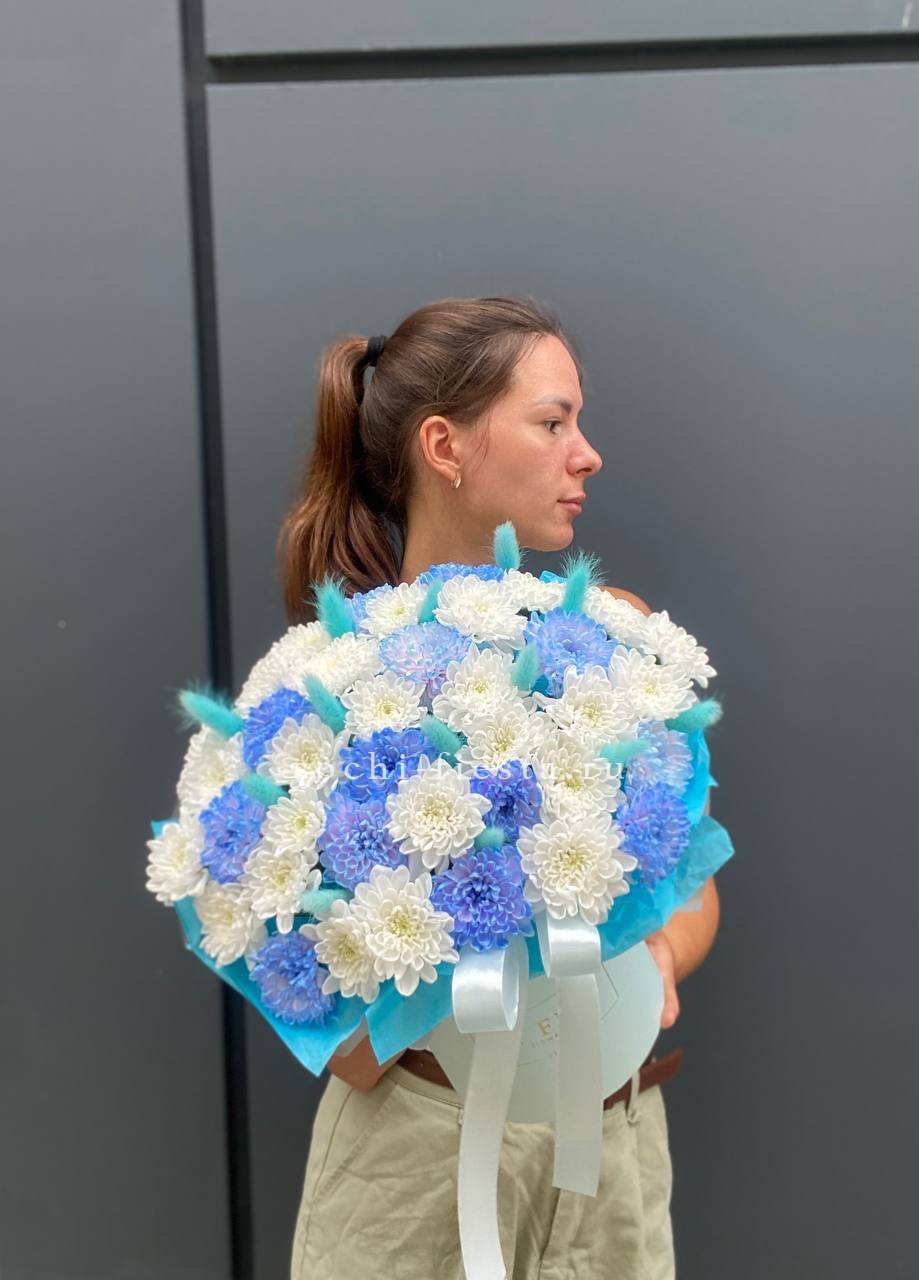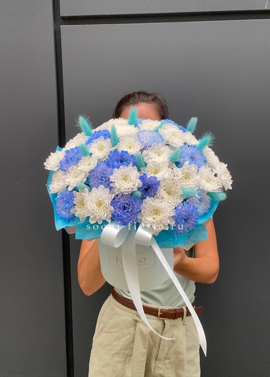 Состав: хризантема кустовая, лагурус, коробка , оформление