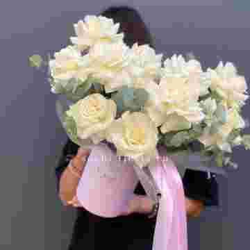 Состав: гортензия, эустома, диантус, роза, бомбастик, статица или аналог, корзина