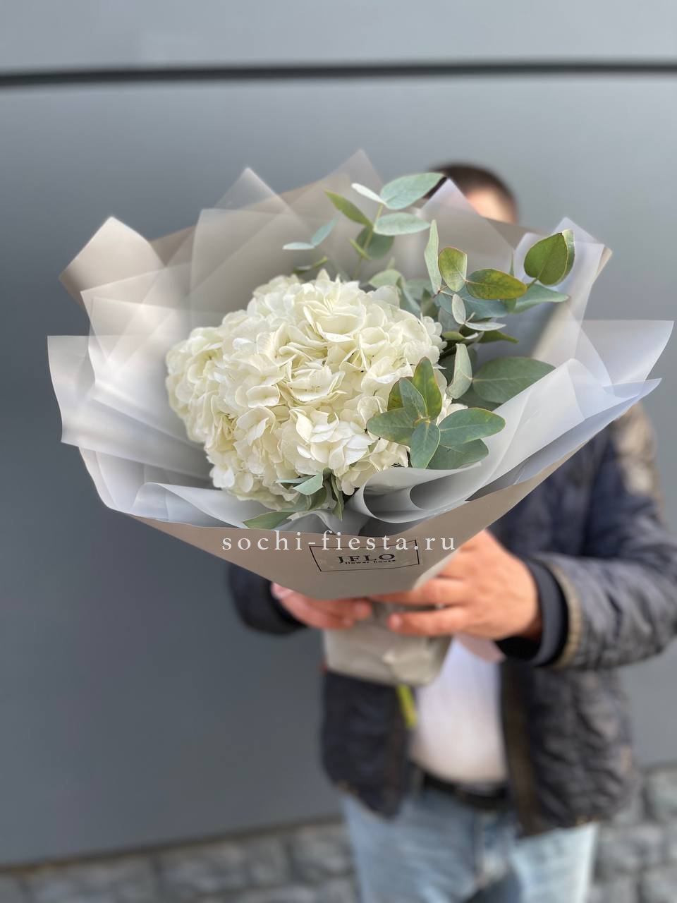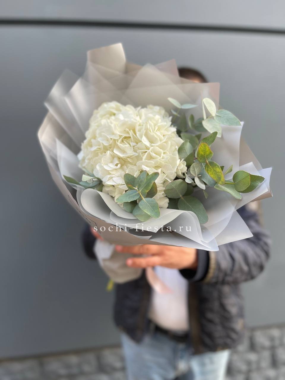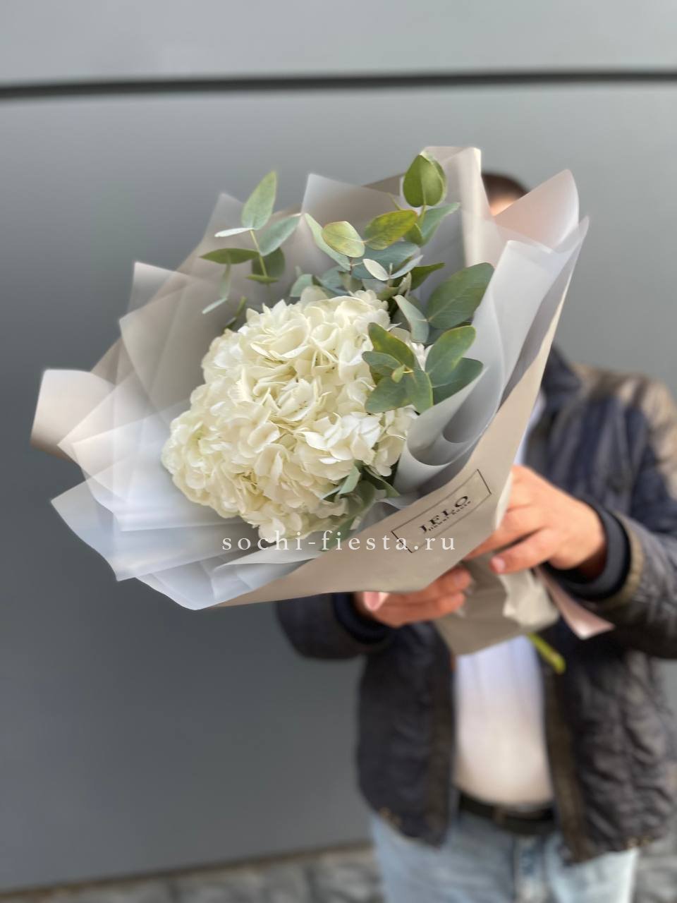 Состав: гортензия белая, эвкалипт, оформление