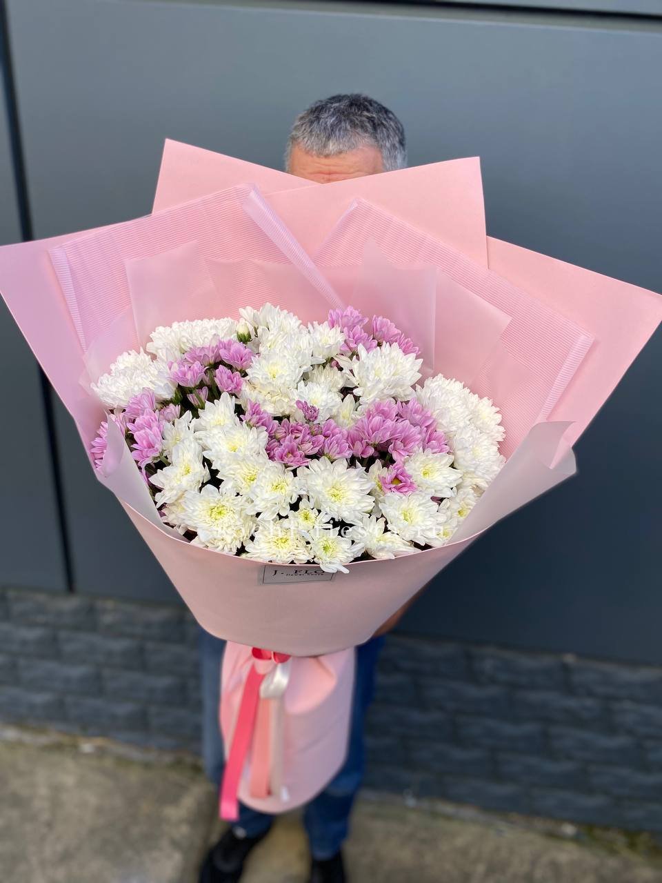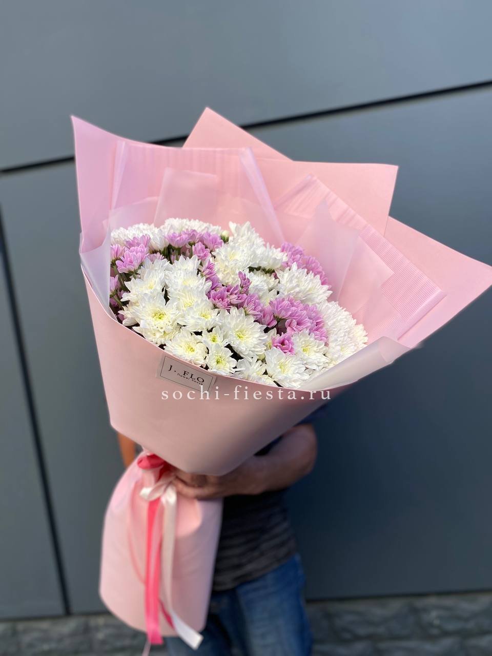 Состав: хризантема кустовая - 15шт., фоамиран, лента