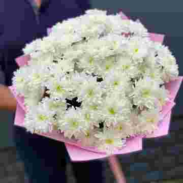 Состав: хризантема кустовая - 9 шт., лагурус, фоамиран, пленка,  лента
