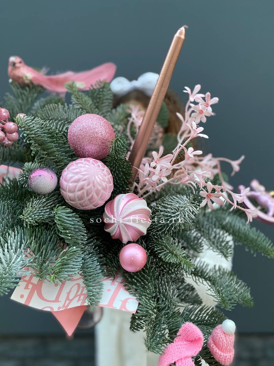 Состав: нобилис, бокал, оазис, свечи, новогодние игрушки, декор