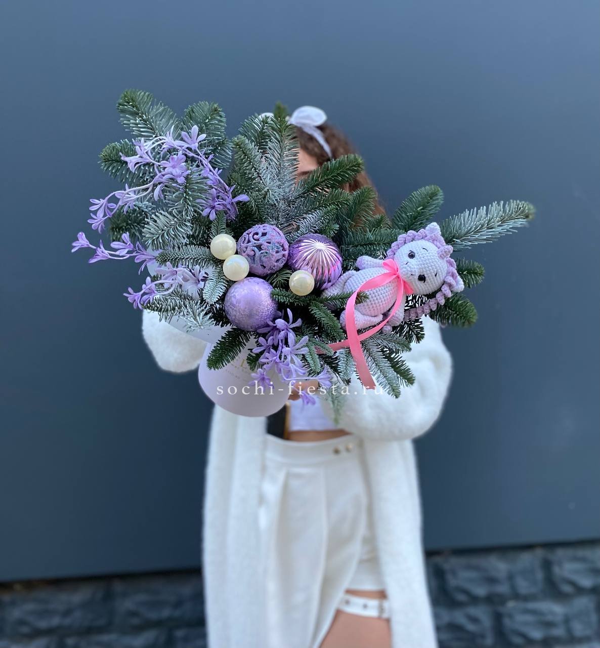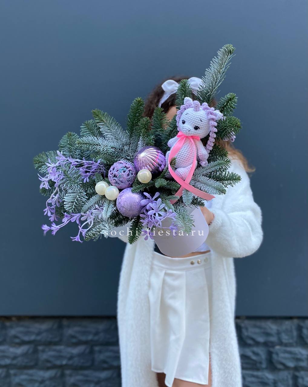 Состав: нобилис, цилиндр, оазис, единорог, новогодние игрушки, декор
