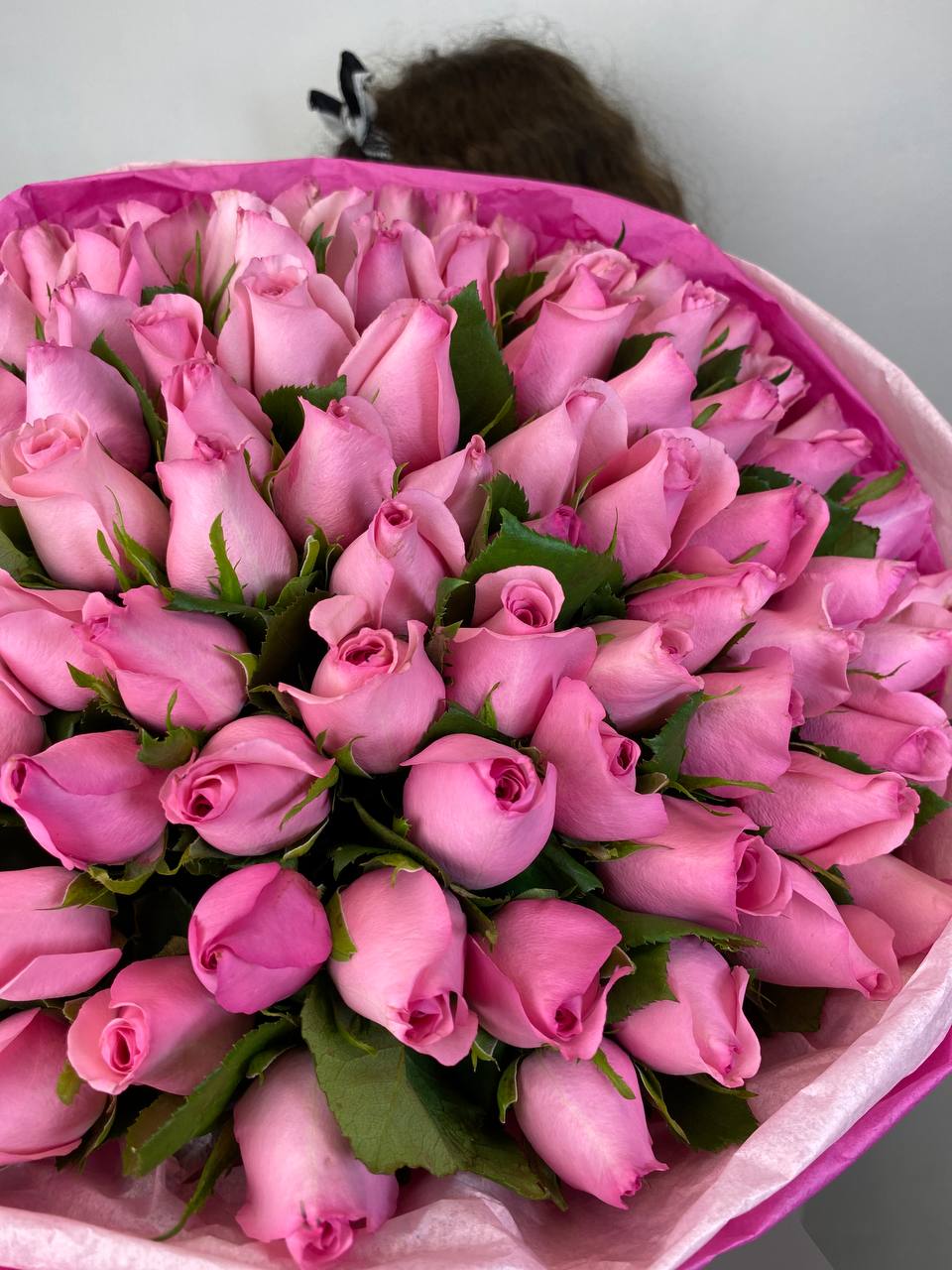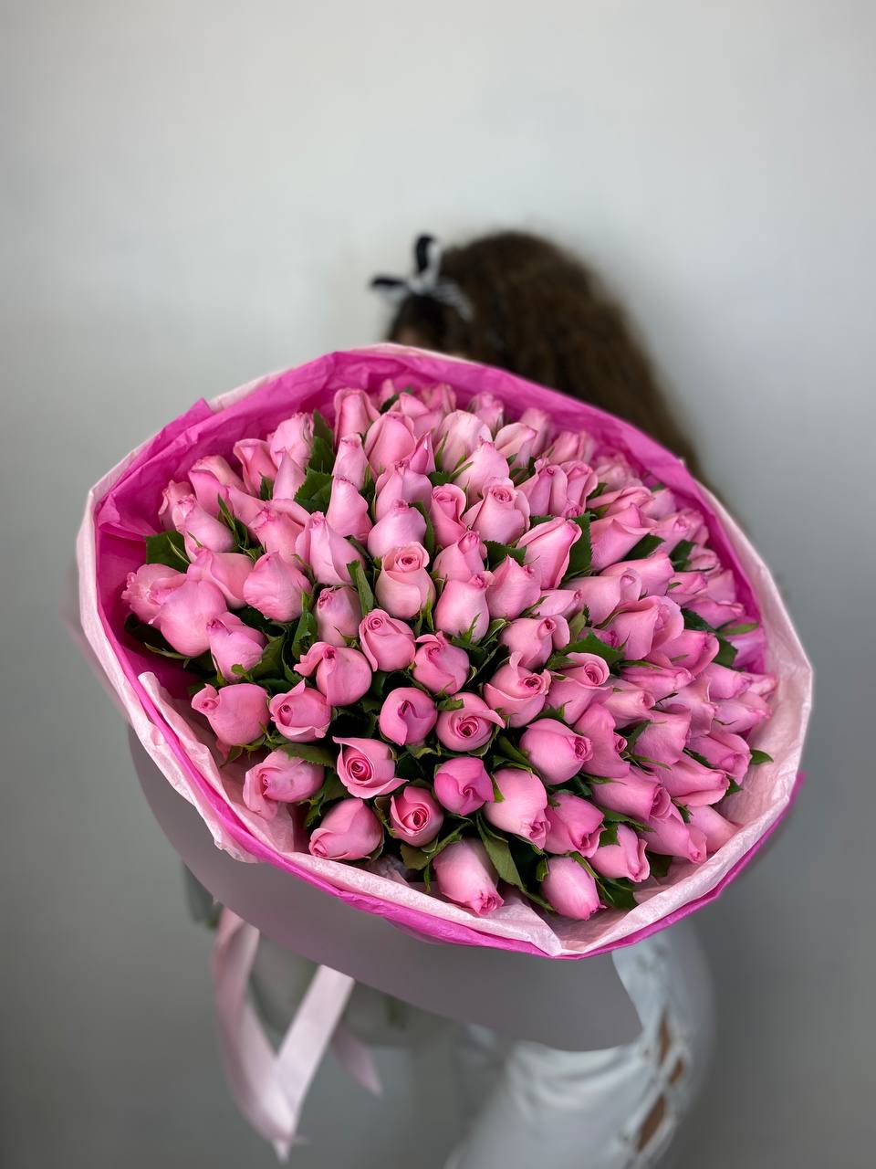 101 розовая роза сорта "Опала". Бутон у розочки не большой, постепенное раскрытие.