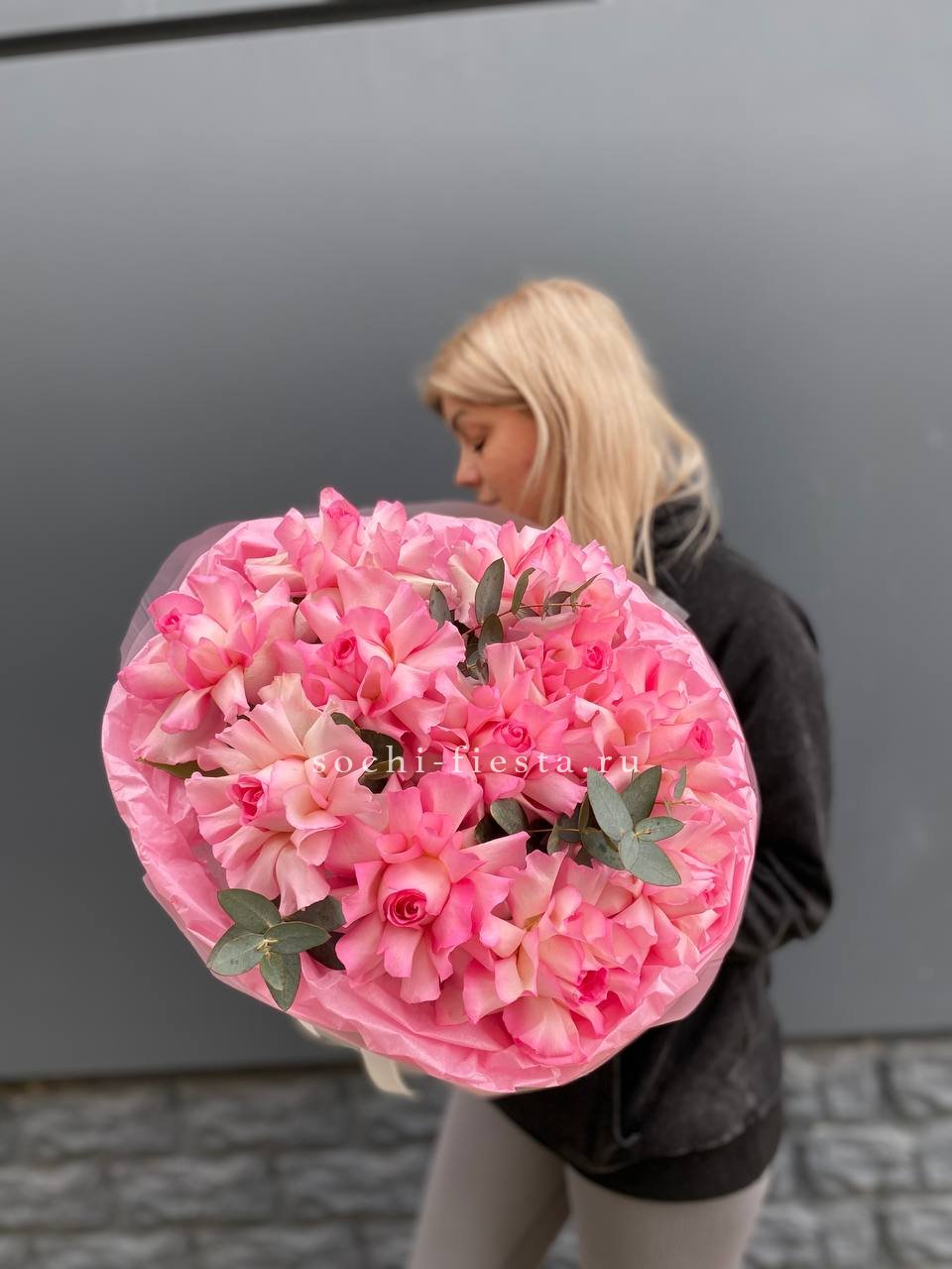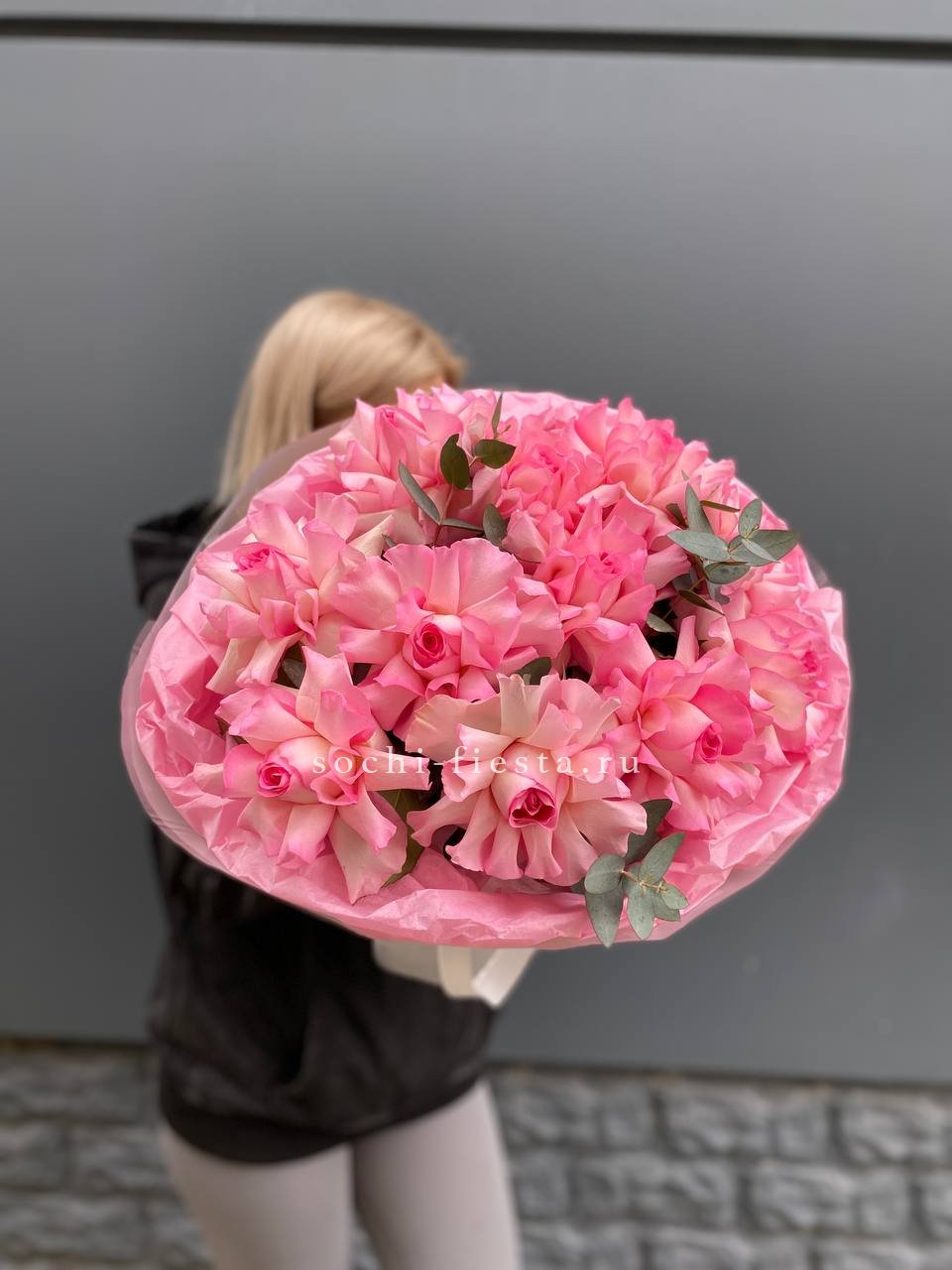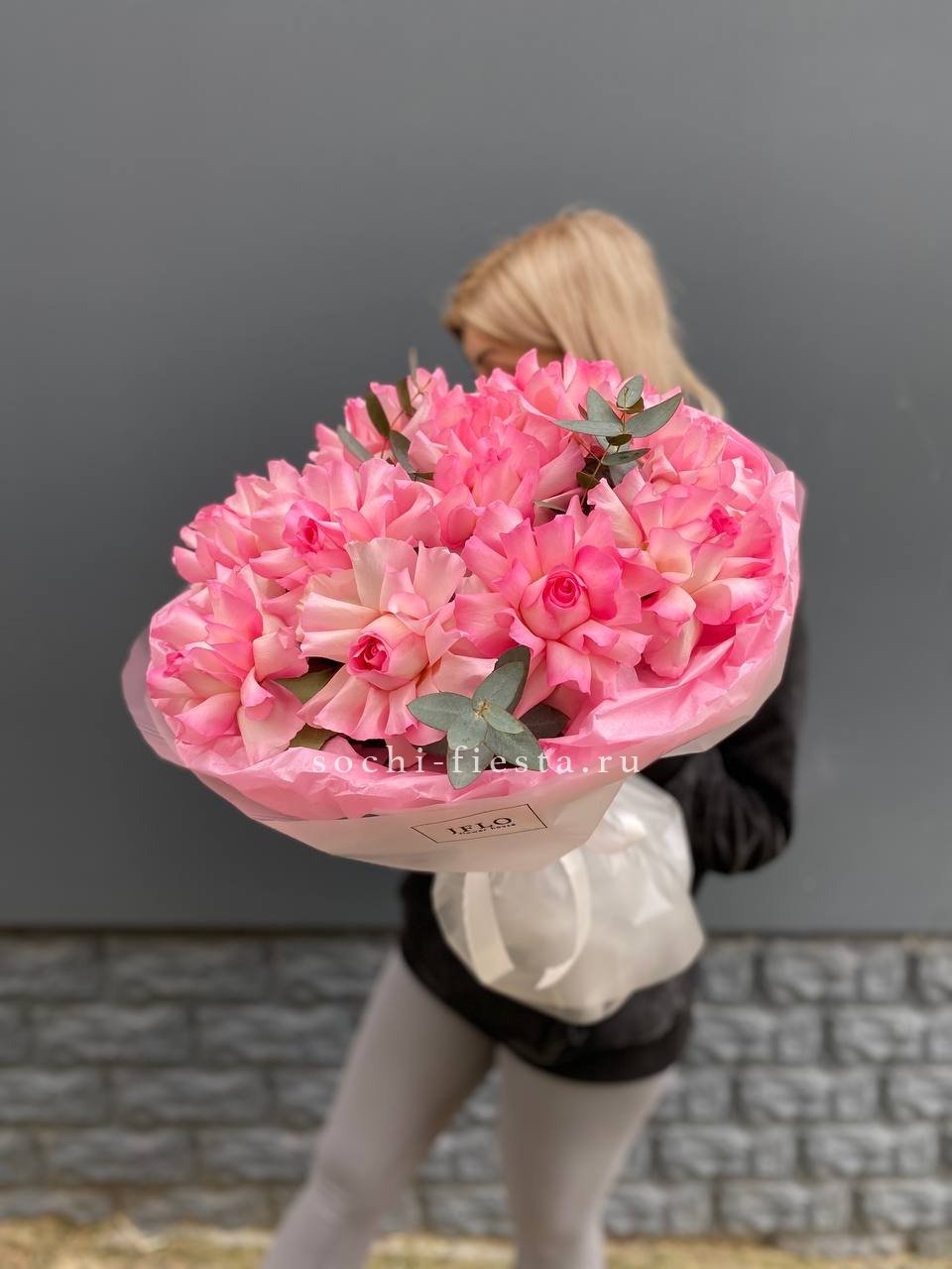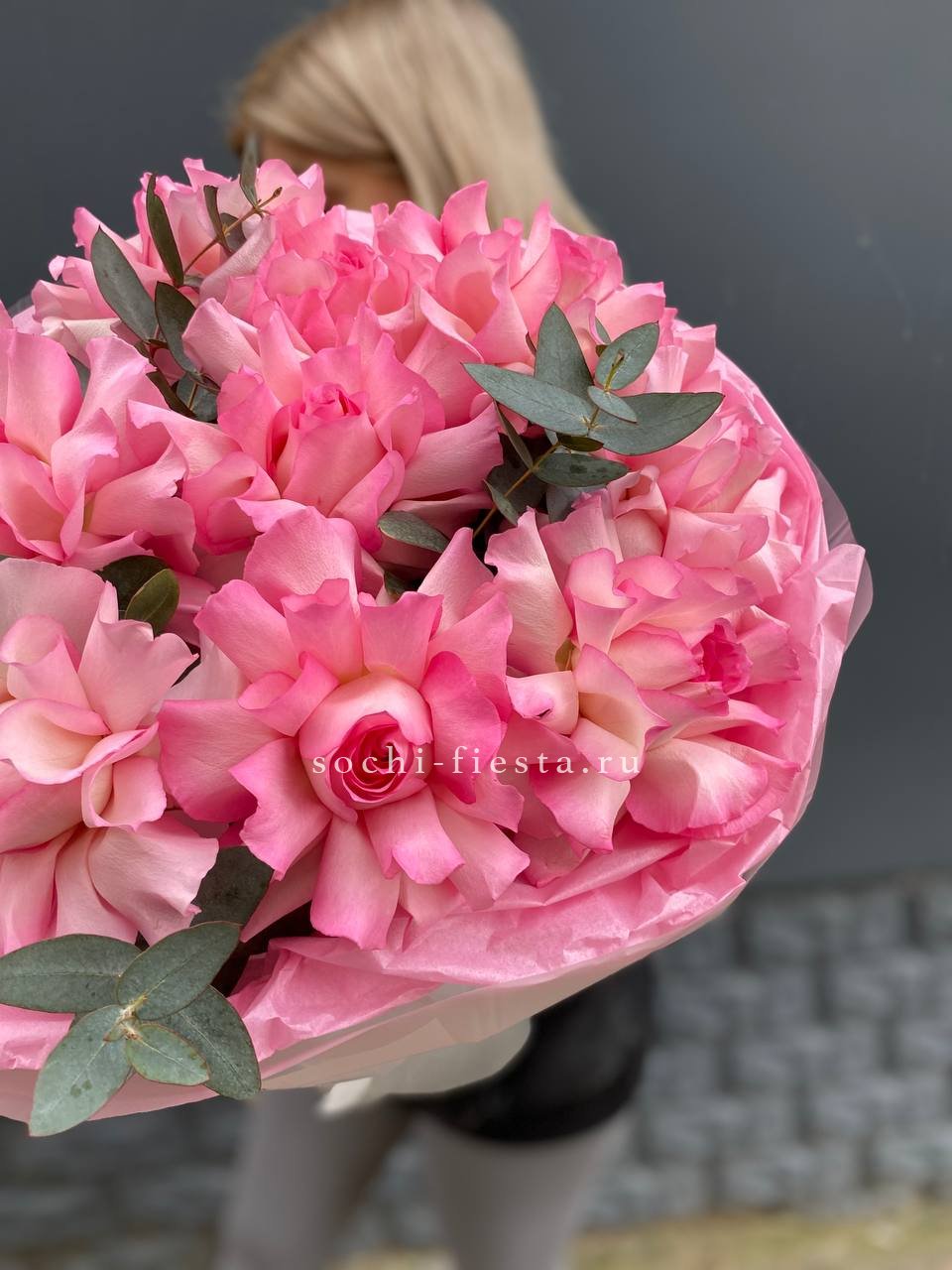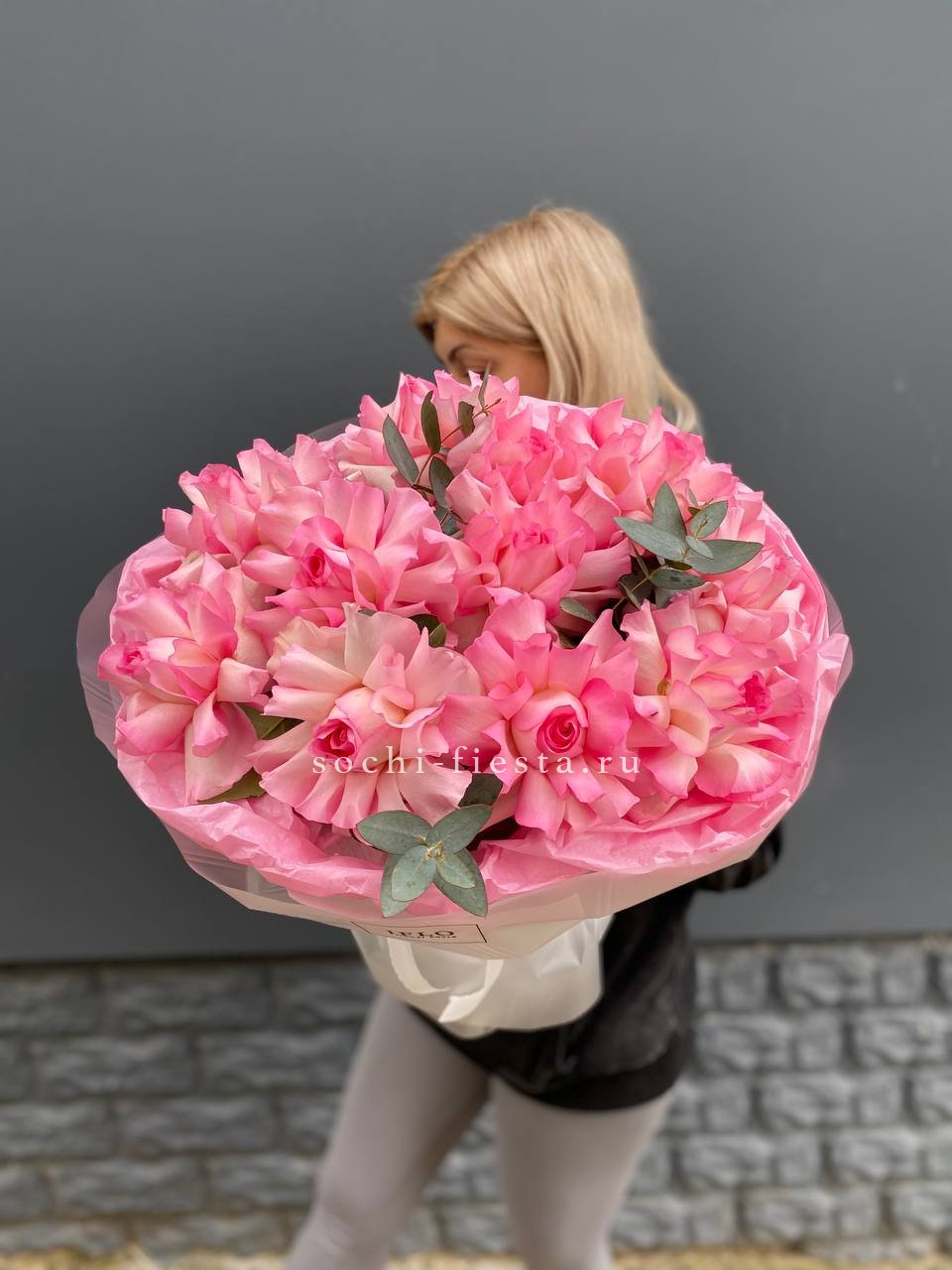 Состав: французские розовые розы в оформлении с эвкалиптом