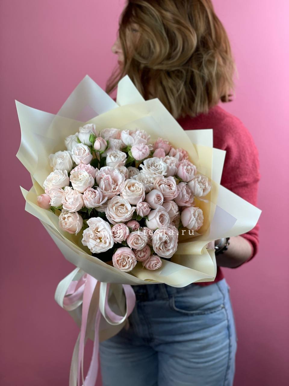 Состав: кустовые розы, лента, дизайнерская упаковка
